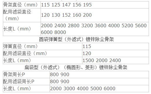 鍍鋅除塵骨架類型及技術(shù)參數(shù)